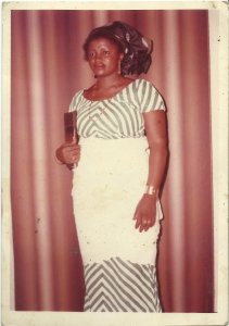 She was pointing with her left hand too, dressed in a simple dark green patterned Ankara blouse and wrapper, (iro and buba style) holding the curtain with her right hand and also indicating the direction I should go with her head while looking sternly at a younger me.